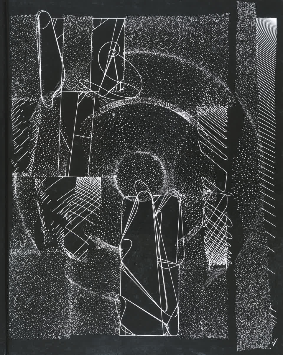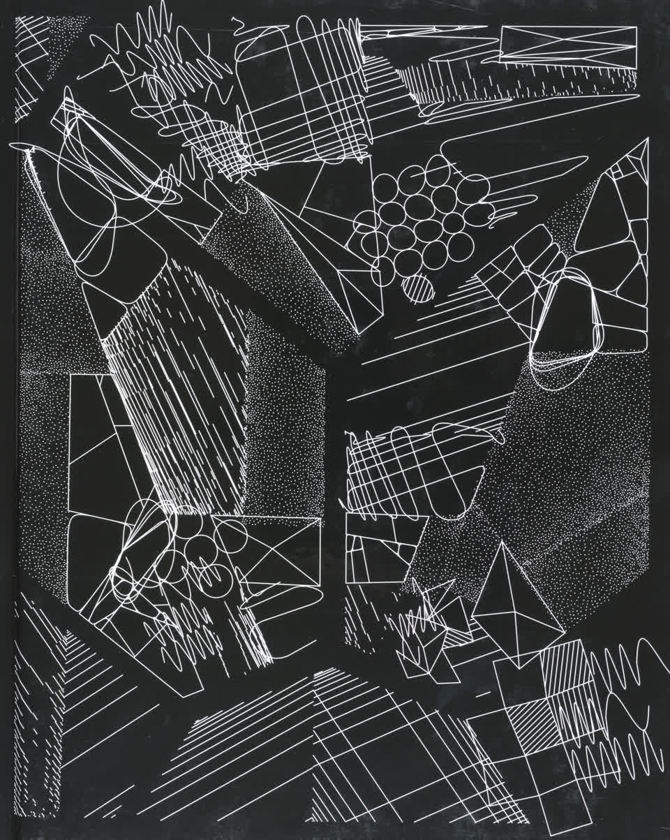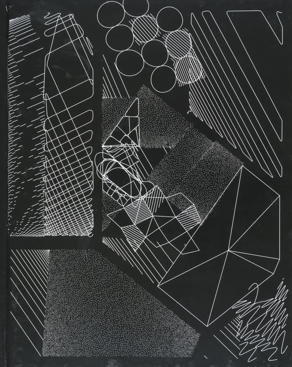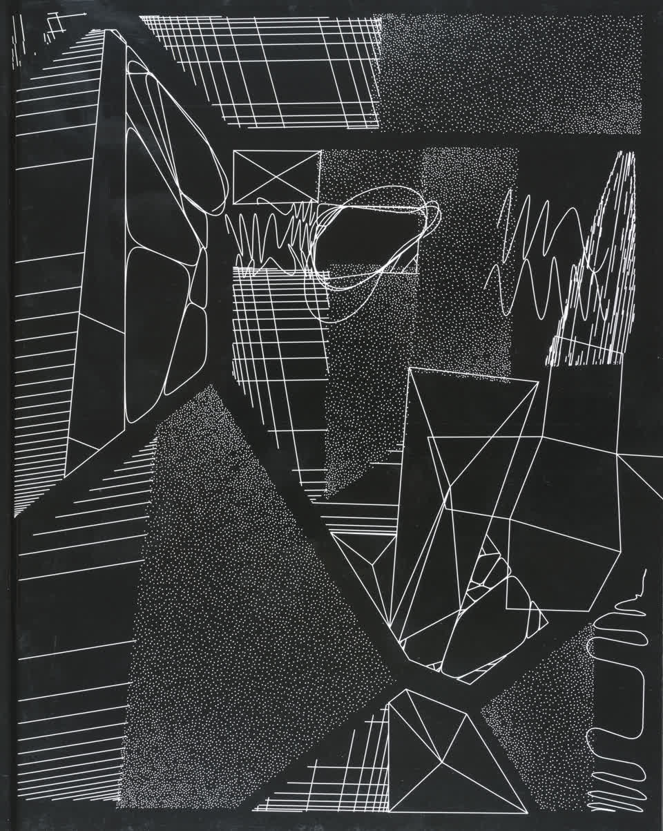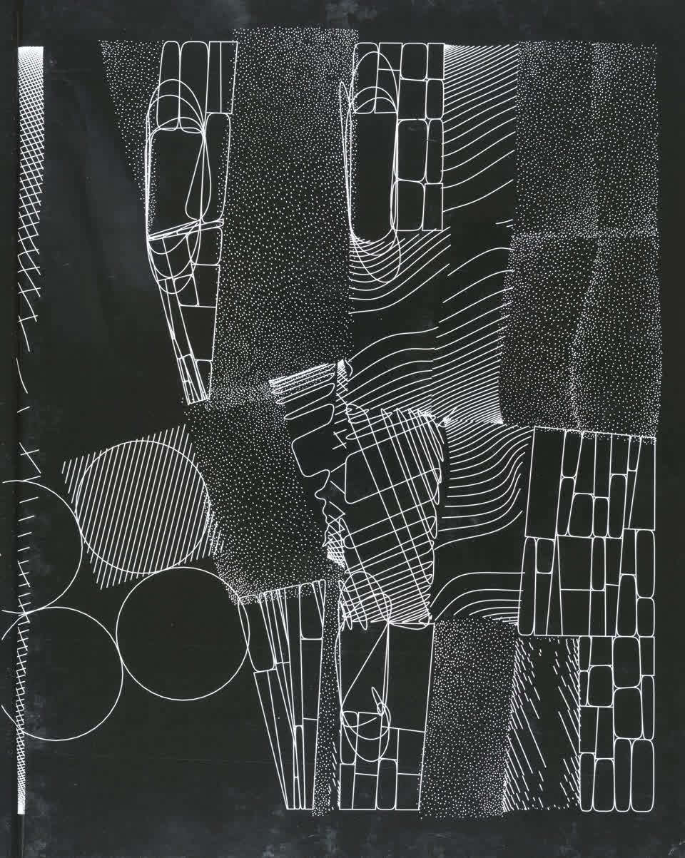 The forms that are subdivided with lines are made from the contours of letters drawn from the Futura font.