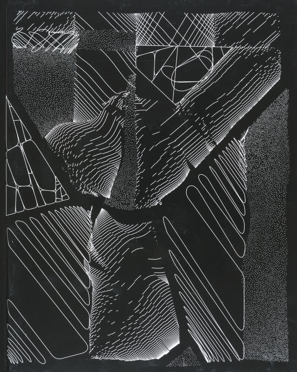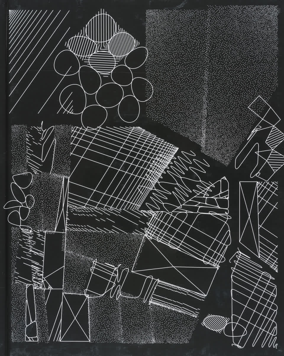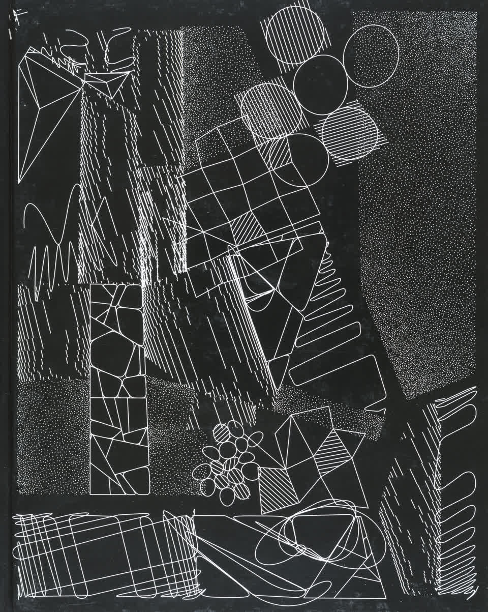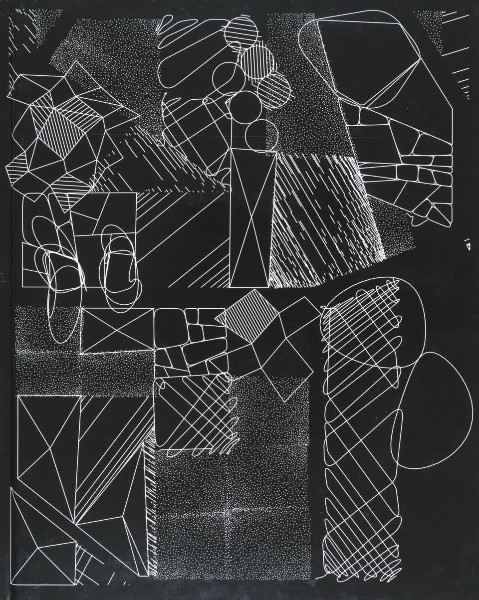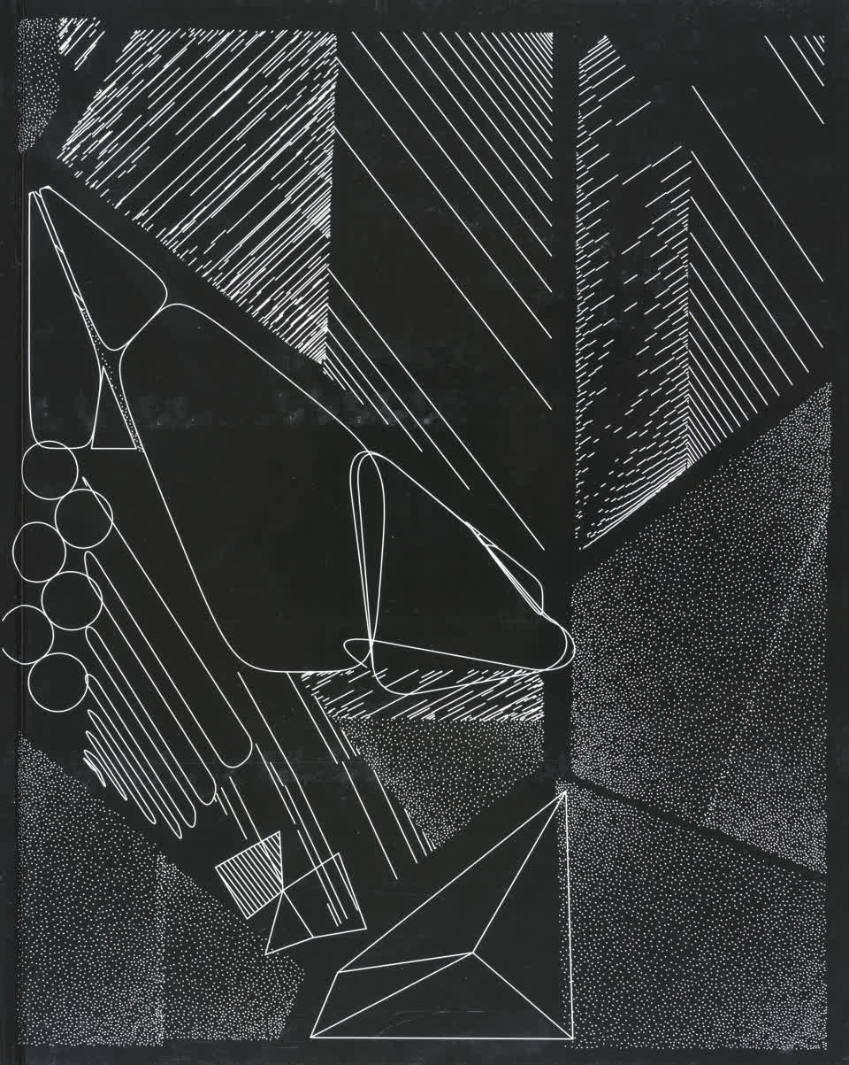 The forms that are subdivided with lines are made from the contours of letters drawn from the Futura font.