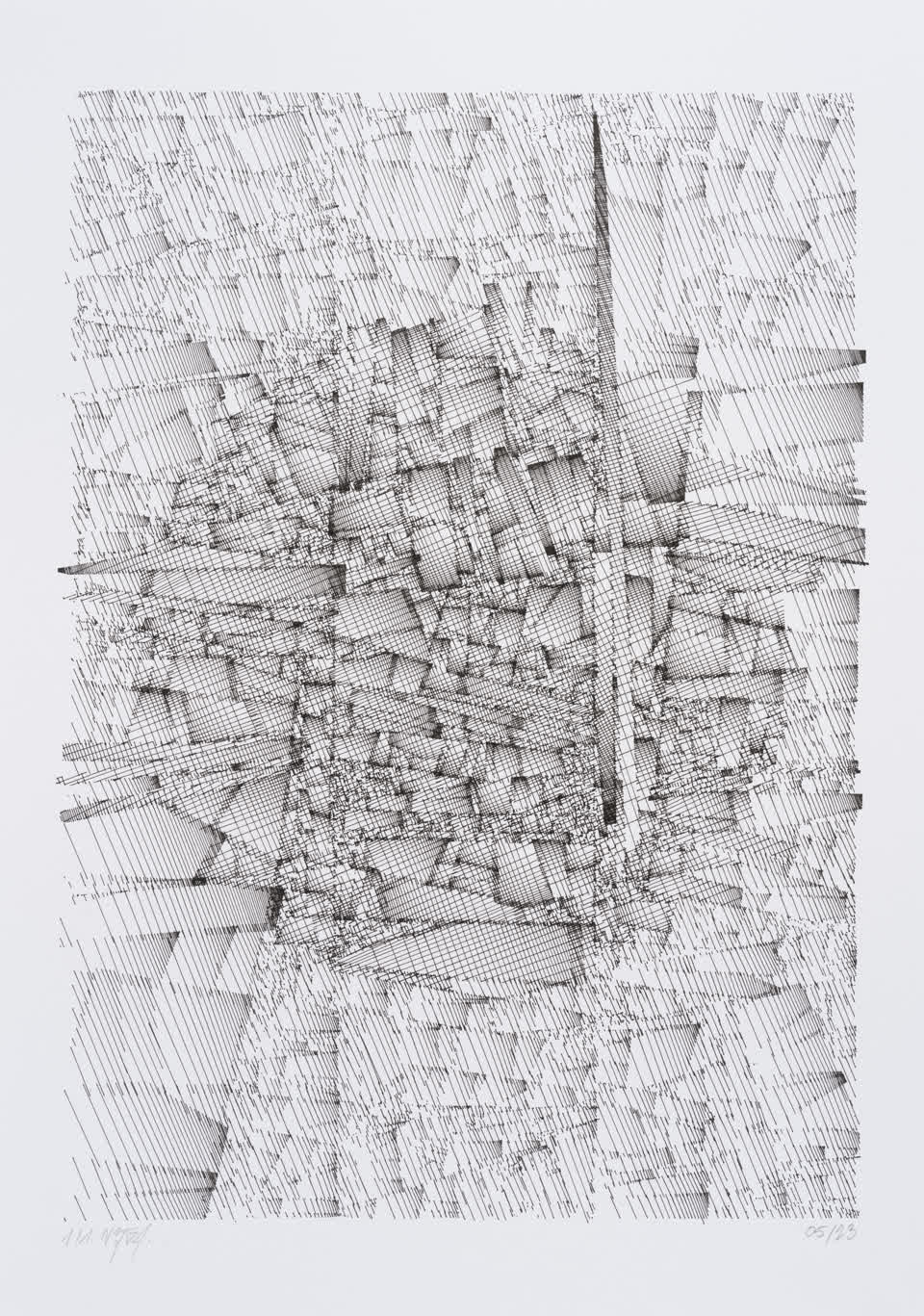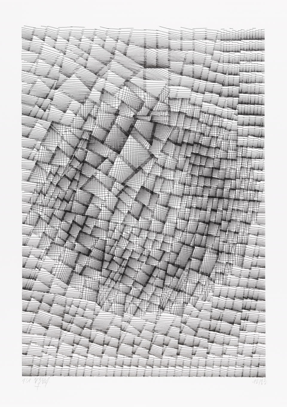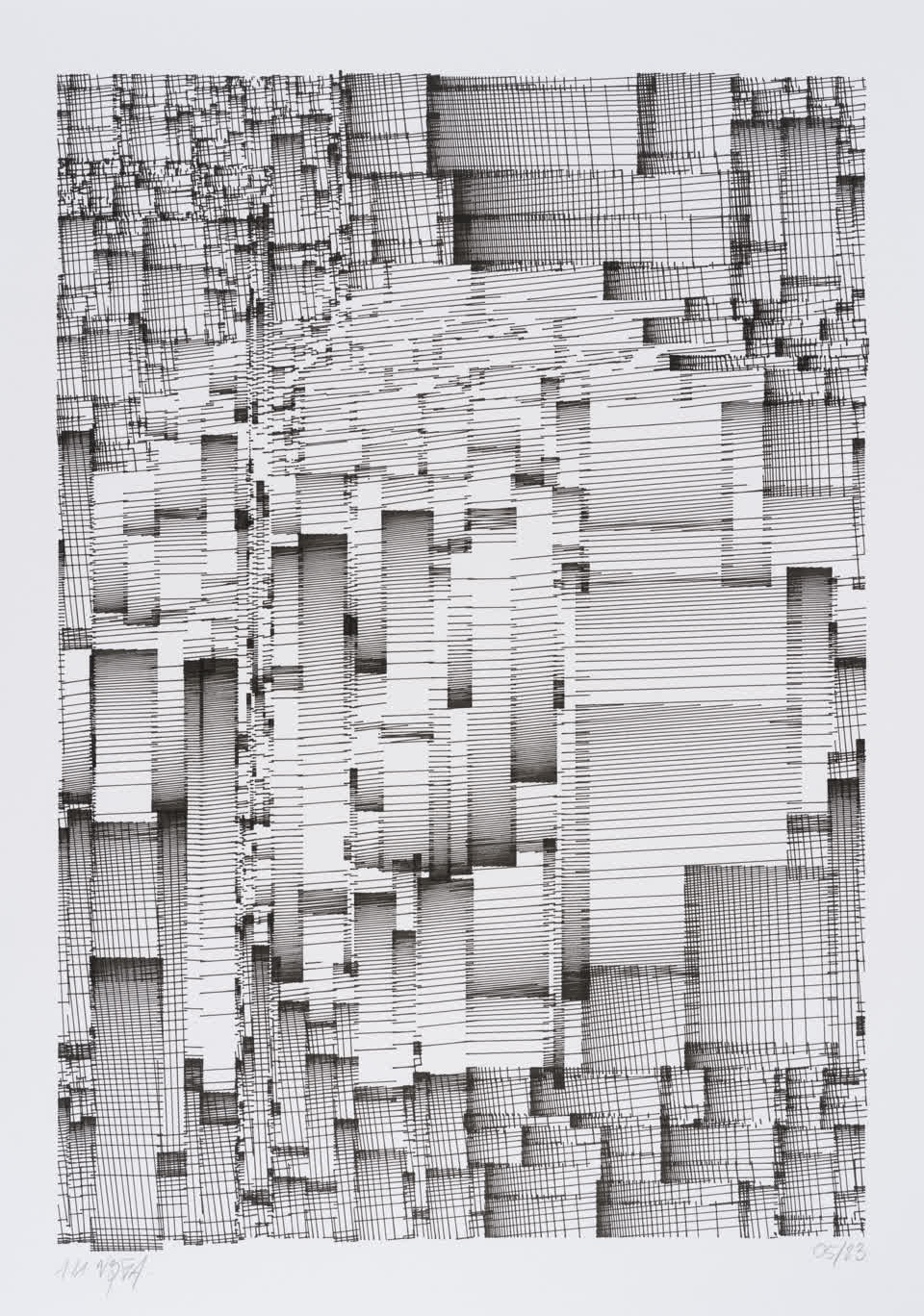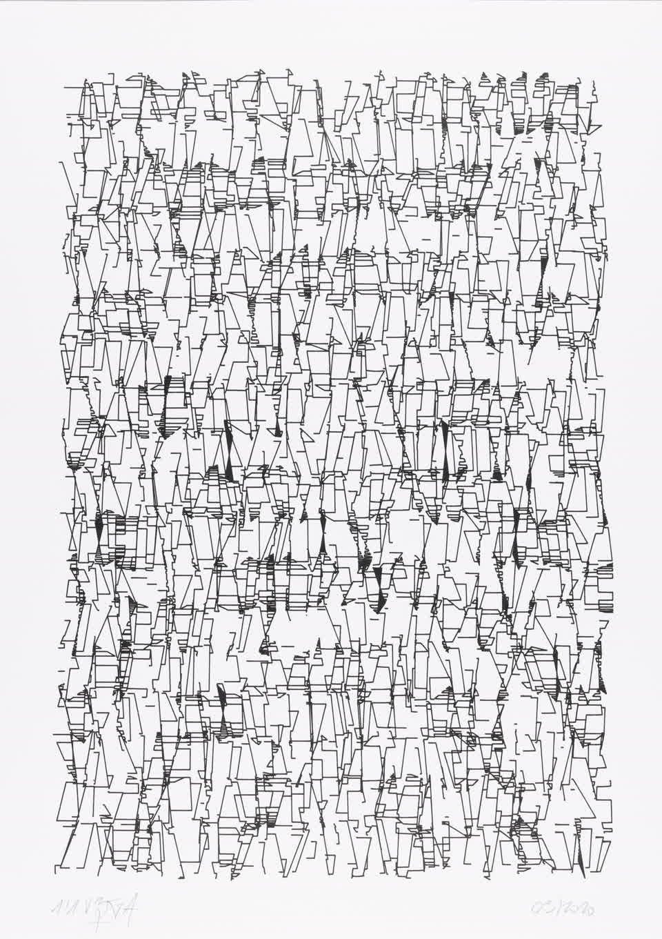 Drawing made with Vera Molnar using DiceGL software.
