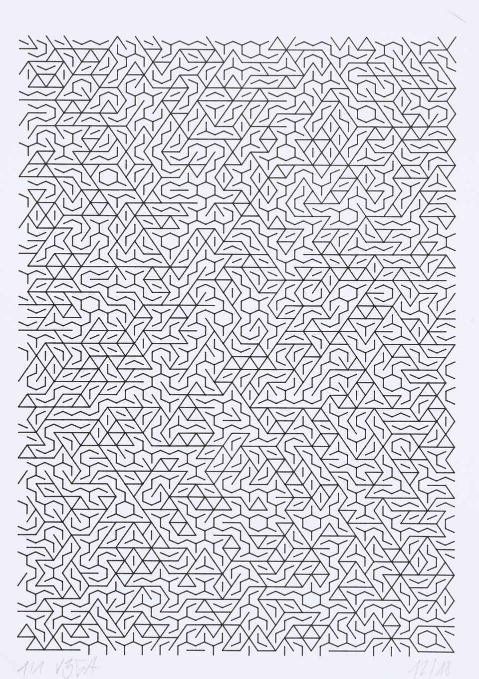 The cells of a hexagon grid are used as support for drawing different combinations of lines.