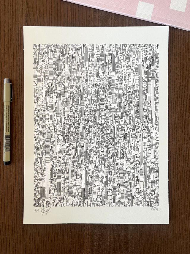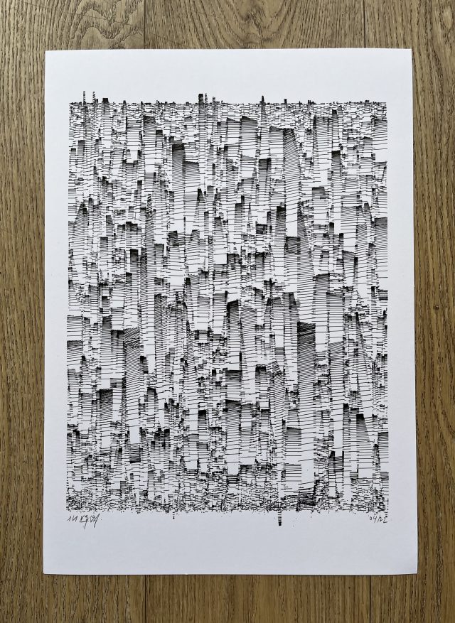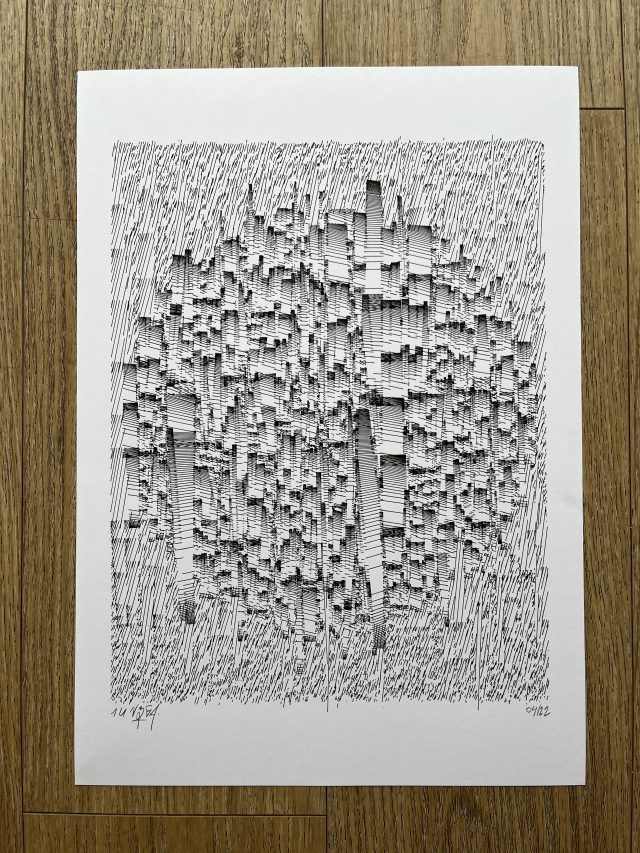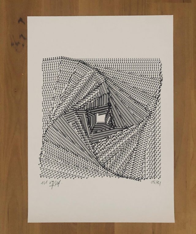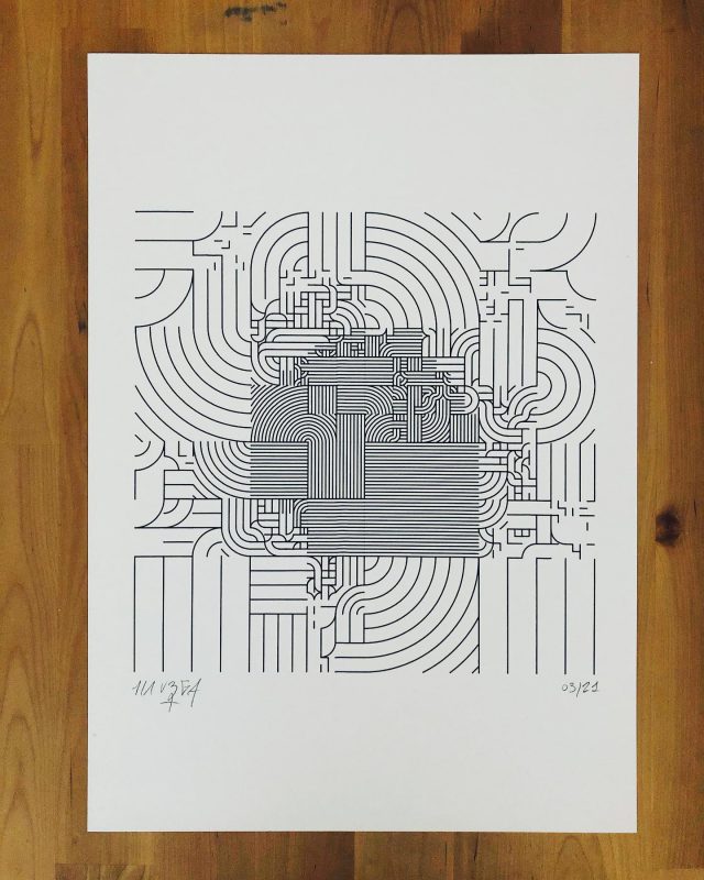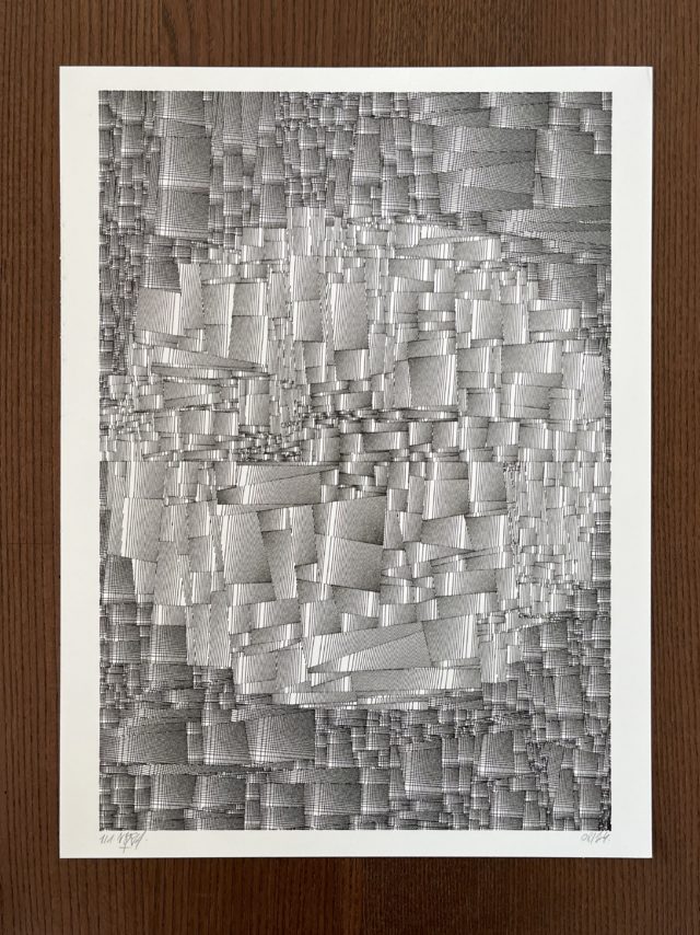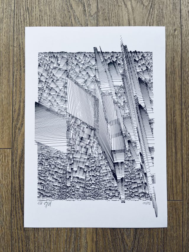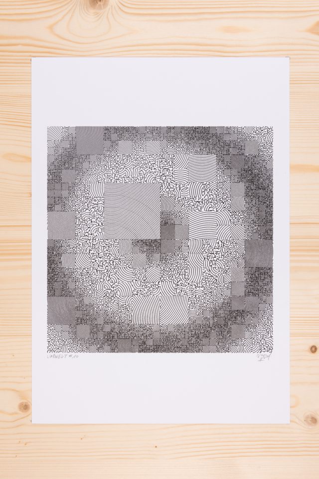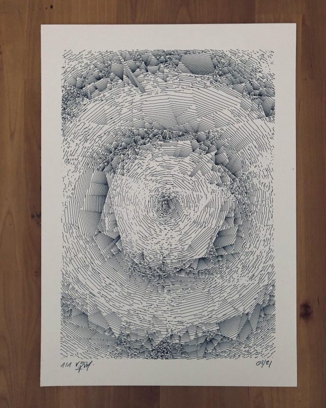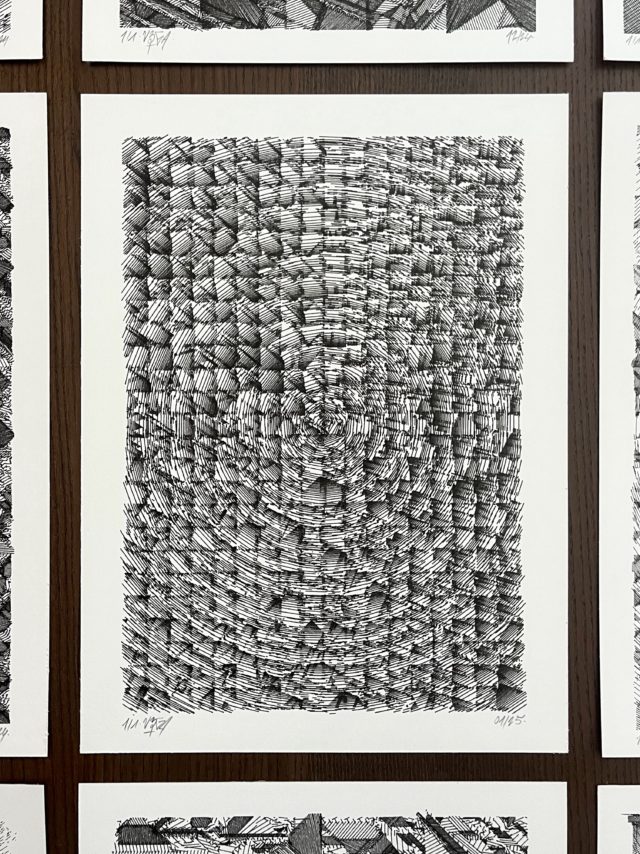 The standard edition will have a softcover representing the whole grid in its complete form. Both the collector’s and standard editions will feature a curated selection of the best plotter artworks of Gachadoat’s career to date, and offer a deep dive in his creative and coding processes, inspiration references, and much more.
