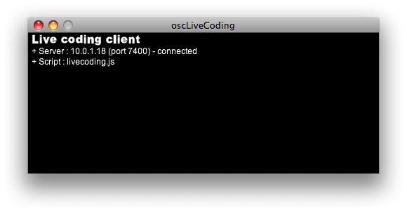 Les données, cad le script à compiler et à éxécuter sur un calque du serveur, sont envoyées via le protocole OSC par l'intérmédiaire d'un programme écrit avec Processing.